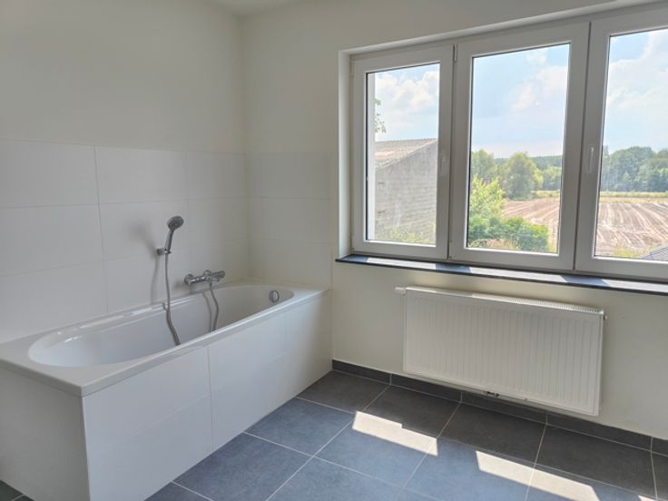 De eerste verdieping bevat een 2de apart toilet, een ruime slaapkamer en de badkamer met ligbad, wastafel met meubel en douche. Op de tweede verdieping kan u nog 2 slaapkamers terugvinden.