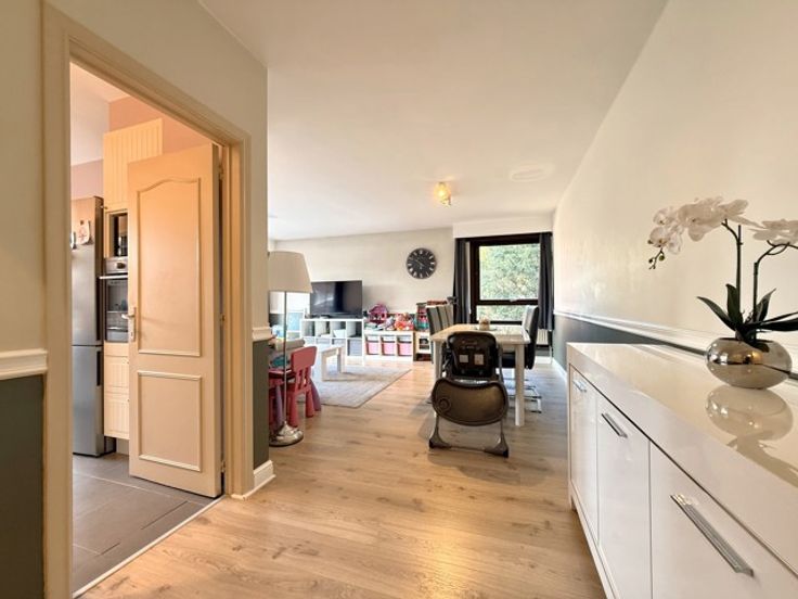 Situé à deux pas du centre sportif de Woluwe et de la rue au Bois, magnifique appartement de +/- 88 m² se composant d'un hall d'entrée avec toilette séparée, séjour de +/- 31 m² donnant accès à la terrasse de +/- 6 m², cuisine super équipée, hall de nuit desservant une chambre de +/- 13 m² avec placards encastrés, bureau ou petite chambre enfant de +/- 6,5 m² et une salle de bains. Cave et emplacement de parking intérieur inclus dans le loyer. Possibilité de bail en société. Provision mensuelle de charges de 250 € (communs, chauffage, eau chaude et froide). PEB D- 208 kWh/m²/an - 41kg CO²/m²/an. Libre le 01/07/2025.