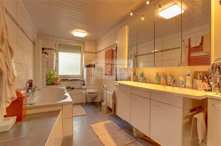 Sorry er is geen nederlandse vertaling beschikbaar. A vendre à Elvange ( commune de Beckerich), 70 Haaptstrooss, très bonne maison d'habitation unifamiliale d'une superficie totale de 190 m² avec jardin entièrement clôturé + abri de jardin ( 11 m²) et 2 annexes ( 42 m² et 30 m²) , garage, 4 chambres à coucher, living, cuisine équipée.