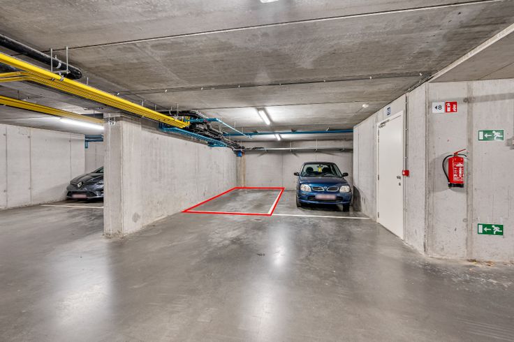 Het appartement op de eerste verdieping beschikt over een ruime leefruimte met open keuken. Naast de keuken kan men een opbergruimte vinden. Via de inkomhal lopen we naar een toilet en een aparte badkamer met ligbad en douchemogelijkheid. Verder vindt u twee slaapkamers die naar wensen kunnen ingedeeld worden. Bijhorend bij het appartement is er een garage en afgesloten gemeenschappelijke fietsenstalling.