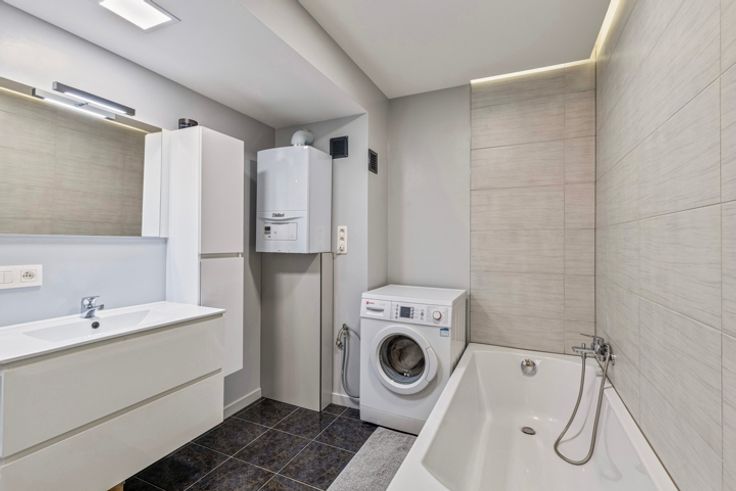 Dit gerenoveerde 2-slaapkamer appartement biedt een uitstekende woonervaring in een stedelijke omgeving, met de nodige moderne voorzieningen en een strategische ligging. Het beschikt over een inkomhal die toegang biedt tot een lichtrijke woonkamer met een open ingerichte keuken. Er is een apart toilet en een badkamer die voorzien is van een aansluiting voor een wasmachine. De twee slaapkamers bieden voldoende ruimte voor comfort. Kamer 1 heeft een oppervlakte van 12 m² en geeft uit op een gezellig terrasje aan de achterkant, terwijl kamer 2 met 7 m² ideaal is voor een bureau of een kinderkamer. Bovendien is er een keldertje voor extra opslagruimte en een overdekte staanplaats voor je auto, wat bijdraagt aan het gebruiksgemak van dit appartement. De renovatie in 2020 heeft het appartement volledig gemoderniseerd, met een vernieuwde badkamer, muren, radiatoren, nieuwe ramen met driedubbele beglazing aan de achterkant van het gebouw, nieuwe elektriciteit en een hangtoilet met een handwasbak. De locatie is eveneens ideaal, met een vlotte toegang tot de Ring, openbaar vervoer, het Basilix Shopping Center, het UZ Jette, het Laarbeekbos, het Kerremanspark en een fietssnelweg, waardoor je het stadsleven optimaal kunt combineren met de nabijheid van groen en voorzieningen. Dit appartement is de perfecte keuze voor wie zoekt naar een instapklare woning in een levendige en goed bereikbare omgeving.Het appartement bevat een stedenbouwkundige inbreuk sinds 1996: constructie van appart