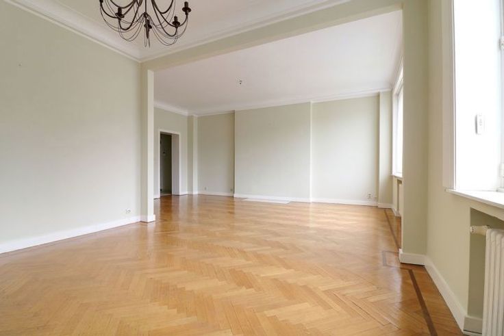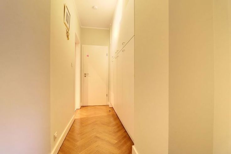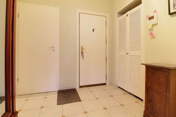 Gelegen tegenover de Montgomery-rotonde, mooie, lichte appartement op het zuiden, met een oppervlakte van ongeveer 85m². Het beschikt over een grote slaapkamer (ongeveer 20m²), een badkamer met ligbad en douche, een zeer elegante woonkamer met mooie eiken parketvloer van ongeveer 24m², een eetkamer van ongeveer 13,5m², een ingerichte keuken met wasmachine en een terras. Een grote garage VERPLICHT (€150) met automatische poort en privéoprit. Inclusief een kelder met gepantserde deur, een beveiligingssysteem in het gebouw, parlophones, een vestiaire, ingebouwde kasten, en dubbele beglazing met rolluiken (elektrisch in de woonkamer/eetkamer).