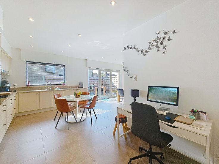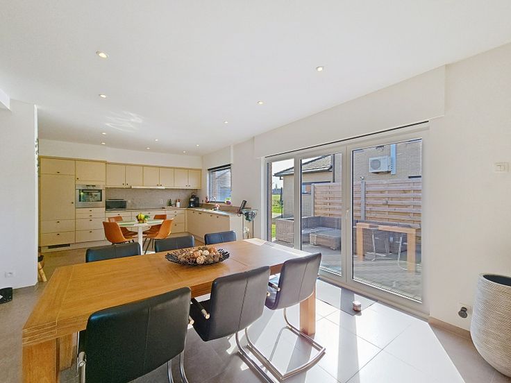 Indeling: inkom - gastentoilet - vestiaire - leefruimte - volledig geïnstalleerde open keuken (voorzien van dubbele spoelbak, vaatwasser, oven, keramische kookplaat, koelkast en dampkap) - berging met aansluiting wasmachine/droogkast - bijkeuken met dubbele spoelbak - nachthal - badkamer met inloopdouche, meubel met dubbele lavabo en toilet - 4 kamers (1 slaapkamer heeft een en-suite badkamer met inloopdouche, meubel met lavabo en toilet) - ruime garage - zolder - terras - tuin.