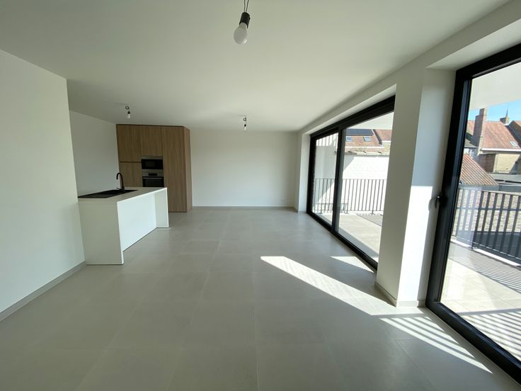 Prachtig nieuwbouwappartement op de eerste verdieping gelegen in het centrum van Diksmuide, vlak naast de Grote Markt. Het appartement bestaat uit een inkomhal met apart toilet, ruime woonkamer, volledig ingerichte open keuken, sanitaire berging, 2 slaapkamers en een badkamer met lavabomeubel en inloopdouche. Aansluitend aan de woonkamer is er een ruim, zuidgericht terras van 12,62 m². Dit energiezuinige appartement werd volledig geschilderd, is voorzien van vloerverwarming, aluminium ramen, warmtepomp en zonnepanelen. In het gebouw is er een lift aanwezig. Het appartement beschikt over een ruime garage met elektrische poort aan 100 euro per maand. De garage bevindt zich achter het gebouw op een afgesloten koer. Broker – Grote Markt 1 – 8600 Diksmuide – bel Birgit 051/50.11.11
