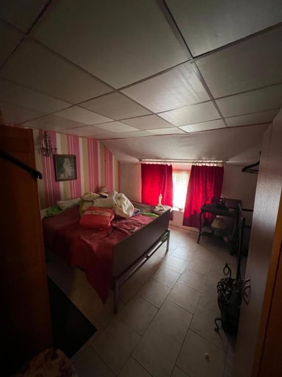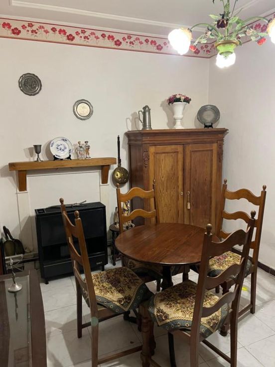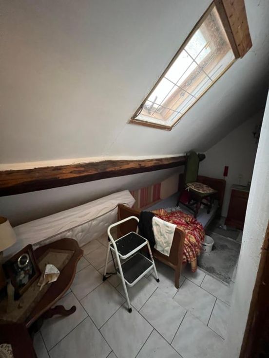 Maison d'habitation comprenant au rez-de-chaussée : 1 pièce de vie, 1 salle à manger, 1 salon, 1 salle de douche, (comprenant 1 W.C.), 1 cuisine. ET : 2 chambres (dont 1 grande et 1 semi-mansardée). EXT : 1 jardin, 1 cour carrelée, 1 abri de jardin. DIVERS : 1 cave, 1 escalier "Stannah", 1 foyer au gaz, volets double vitrage, volet extérieur pour la porte d'entrée, volets à l'arrière, toit en ardoise en bon état, plateforme, raccordement à l'égout, pas de cuve à mazout.