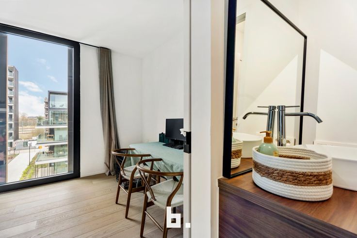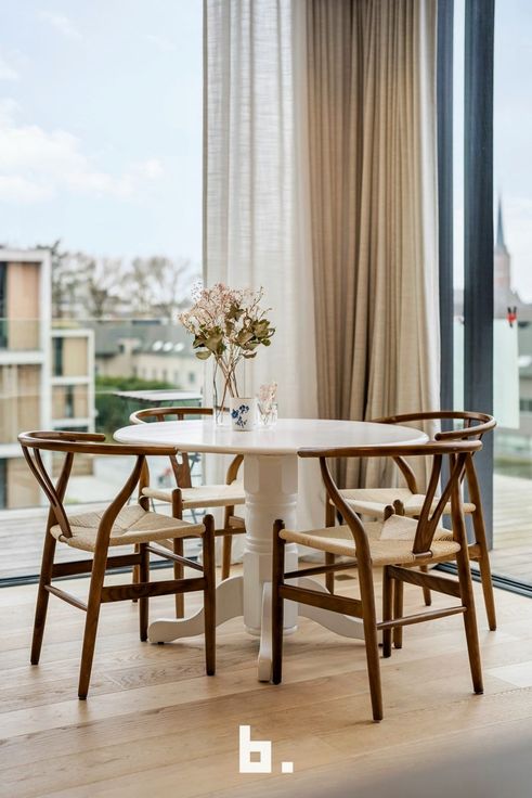Algemeen bezoekmoment op zaterdag 26 april van 12u00 - 13u00 // Vooraf aanmelden verplicht Stap binnen in dit prachtige nieuwbouwappartement en ervaar de perfecte combinatie van stijl, comfort en duurzaamheid. Dit recent afgewerkte appartement, opgeleverd in 2023, werd ontworpen door een architect die met zorg en oog voor detail hoogwaardige materialen selecteerde. Dankzij de ligging aan het idyllische kasteelpark, vlak bij Kasteel Blauwhuis, geniet je dagelijks van een groenrijke en rustgevende omgeving. Binnenin zorgt de lichtrijke woonkamer voor een warme en uitnodigende sfeer, ideaal om te ontspannen of gasten te ontvangen. De moderne keuken is volledig uitgerust met de nieuwste toestellen en biedt alles wat je nodig hebt om culinaire hoogstandjes te bereiden. Met twee slaapkamers heb je alle flexibiliteit—of je nu extra ruimte nodig hebt voor een gezin, een thuiskantoor of een logeerkamer. De stijlvolle badkamer beschikt over zowel een inloopdouche als een ligbad, zodat je elke dag kan kiezen tussen verfrissing of ontspanning. Vanuit de woonkamer stap je zo op het ruime zuidwestgerichte terras, waar je kan genieten van een prachtig uitzicht op het groene landschap en kasteel Blauwhuis. Dit appartement voldoet aan alle moderne eisen op het vlak van duurzaamheid en energiezuinigheid, met vloerverwarming en passieve koeling via een geavanceerd geothermisch warmtepompsysteem. Wil je extra gemak? Er is een garage beschikbaar die apart aangekocht kan worden, ideaal als ve