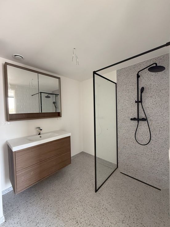 Het omvat een open keuken (oven/ inductie kookplaat/ dampkap/ koelkast met diepvriesvak/ vaatwasmachine) met afzonderlijke berging. Lichtrijke, strakke leefruimte met aangrenzend terras (+/- 25 m2). Badkamer met inloopdouche. Afzonderlijk toilet. Er is een afzonderlijke teller voor water en elektriciteit.