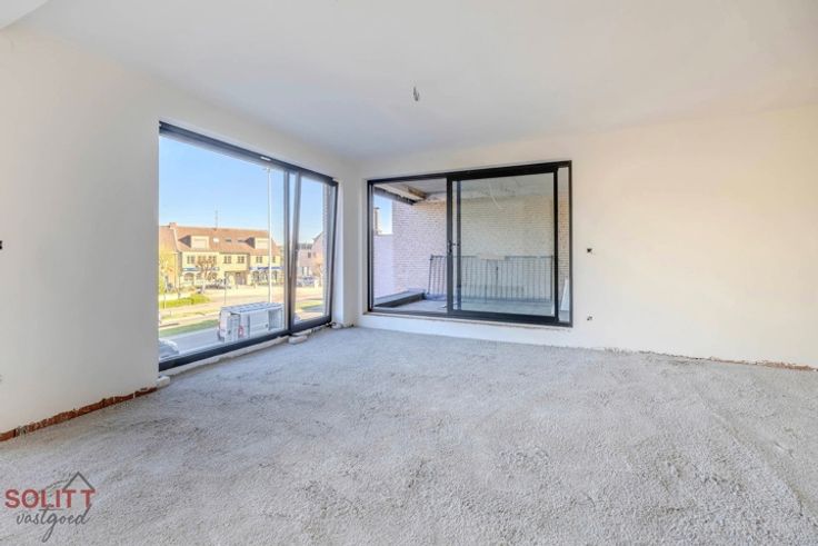Nieuwbouwappartement (95m²) met 2 slaapkamers, inpandig terras (12m²) en bovengrondse parkeerplaats in het centrum van Zandhoven.
