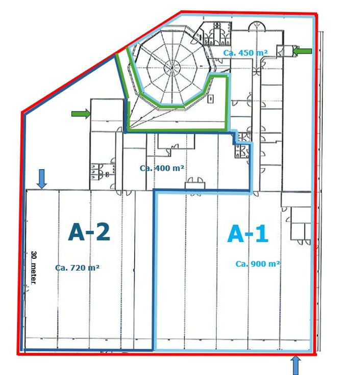 En een magazijn of atelier van ca. 900m² (30 x30 m)