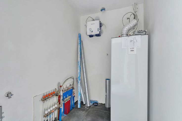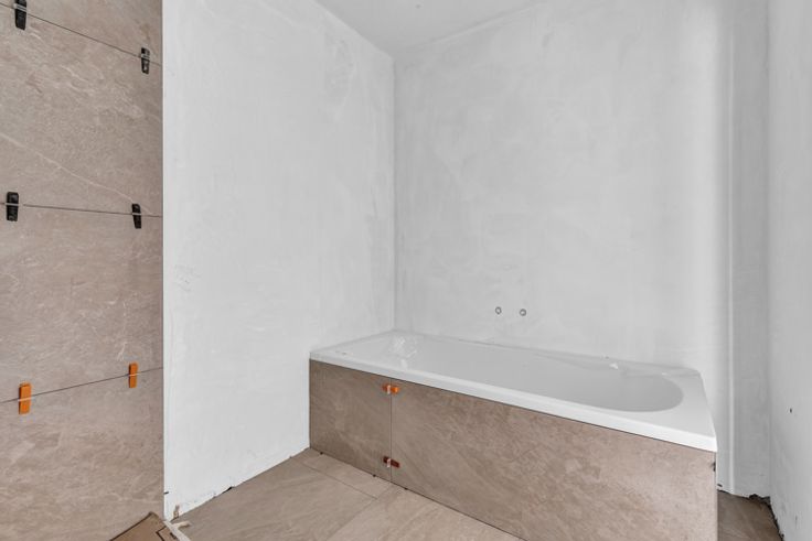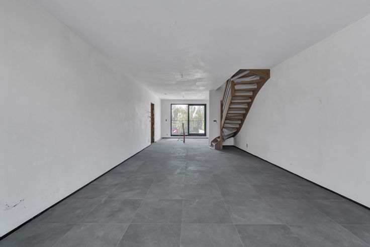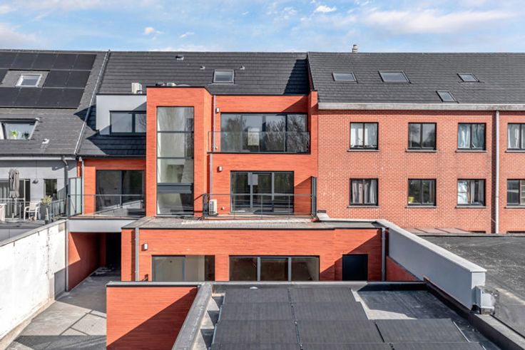 VERKOOP ONDER REGISTRATIERECHTEN! In de Parochiestraat in Iddergem (Denderleeuw) bevindt zich het prachtige project “FRAN”. Dit kleinschalige project bestaat uit vier energiezuinige en luxueuze appartementen met achterliggend garageboxen. Scholen, winkels, horeca en openbaar vervoer zijn in de korte nabijheid. Het appartement bevindt zich op de eerste verdieping, waarbij in de inkomhal de berging en apart toilet terug te vinden zijn. Nadien bereiken we de ruime en lichtrijke leefruimte (35 m²) met aansluitend de open keuken (13 m²). Aansluitend aan de keuken is er een aangenaam terras (7,6m²) aanwezig. Via een open trap in de leefruimte komen we op de verdieping terecht, met twee slaapkamers, badkamer, (tweede) apart toilet en technische ruimte. Achterliggend zijn er garagebox(en), voorzien van elektrische poort, te koop. Vloerverwarming (warmtepomp) – Zonnepanelen – Luxueuze afwerking – E-peil 20 Voor meer informatie en/of een bezoek, contacteer Ellen: 054 69 39 37 of ellen@topo-immo.be