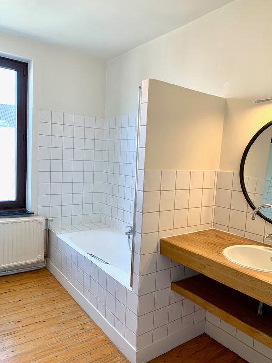 Wordt u onze nieuwe bovenbuur ? Boven KARMA feel good store verhuren we een mooi ingericht appartement, afgewerkt met de beste materialen, bereikbaar via een aparte trap. Het appartement is beschikbaar en werd net volledig opgeknapt. Op de tweede verdieping 2 ruime slaapkamers, de badkamer met douche/bad en een toilet. Op de derde verdieping een ruime goed geïsoleerde open leefruimte met volledig ingerichte keuken en een berging (met CV-ketel op aardgas en plaats voor wasmachine/droogkast). Op de zolder nog een extra bergruimte. Lage EPC van 168. Met een bewonerskaart steeds parking beschikbaar op het plein op 30 meter. Contract op lange termijn, niet voor studenten. Bel 0494544716 om een afspraak te maken.