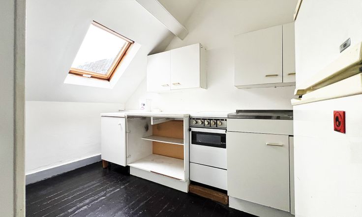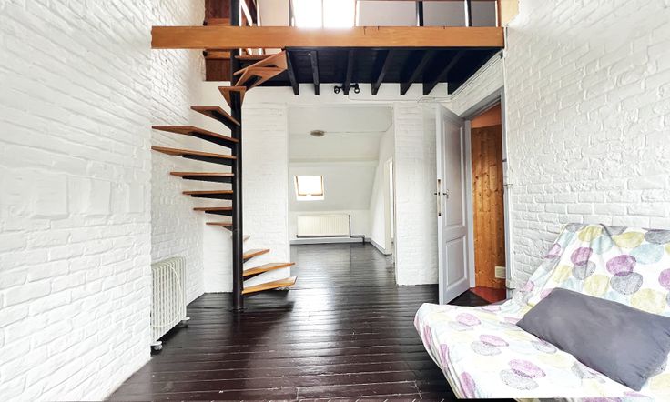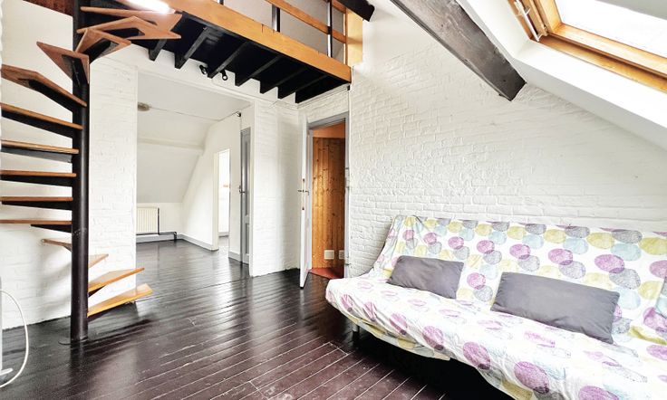 Les combles sont aménagés en un petit studio avec kitchenette, salle de douche et chambre en mezzanine accessible par un escalier intérieur.