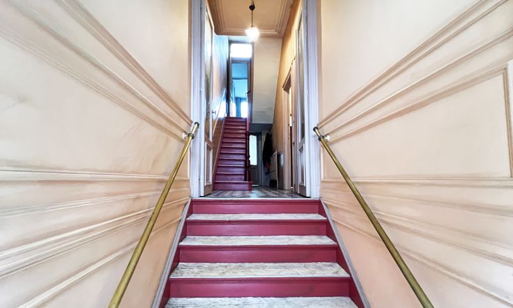 Le bel-étage se compose d’un vaste hall d’entrée menant à trois pièces en enfilade : deux salons, une salle à manger, et une cuisine attenante avec accès direct au jardin, à l’abri des regards.