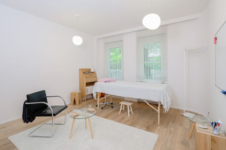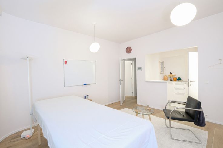 Gelijkvloers gemengd gebruik kantoor/beroeps en residentieel van ± 90 m² bruto. Momenteel is het als volgt samengesteld: inkomhal van ± 2,5 m², wachtruimte van ± 7,5 m², 3 polyvalente ruimtes gebruikt als kantoren van ± 13, 12,5 en 8,5 m², een woonkamer van ± 16,5 m² met doucheaccommodatie van ± 1,5 m², kitchenette van ± 3,5 m², gang van ± 5 m², 2 toiletten van elk ± 1 m². Doos erbij voor 50.000 €. Ook : Dubbele beglazing, parketvloer, video-intercomsysteem, collectieve gasketel. PEB G. Onmiddellijk te bezichtigen!