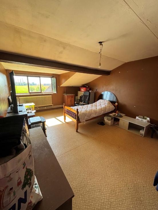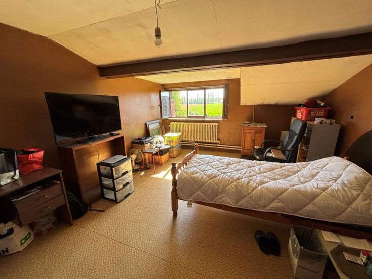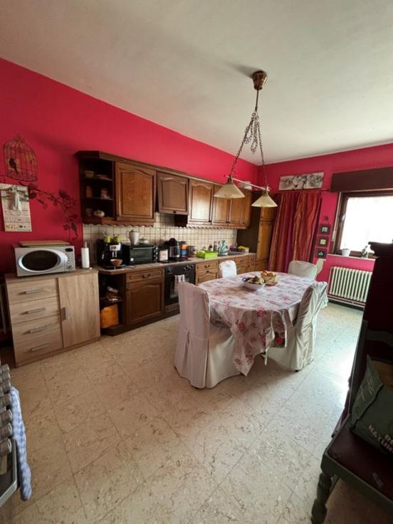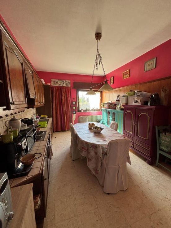 Maison de 165 m² comprenant cave, salon, salle à manger, cuisine équipée, buanderie, jardin, remise - Etage: 4 chambres, sdb, grenier, double vitrage à l'avant, volets. Louée actuellement 550 eur.