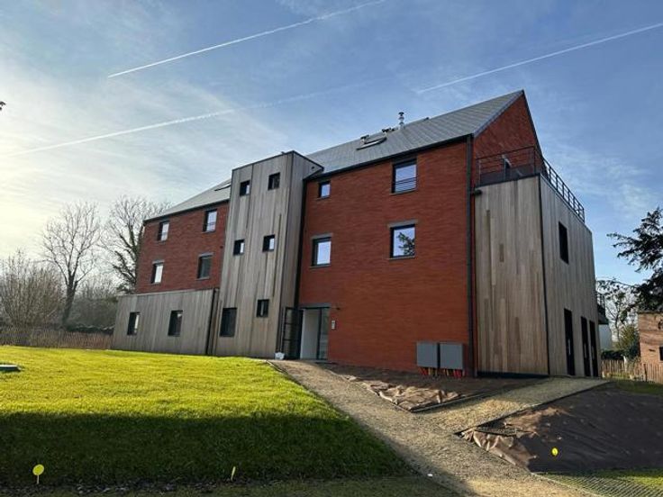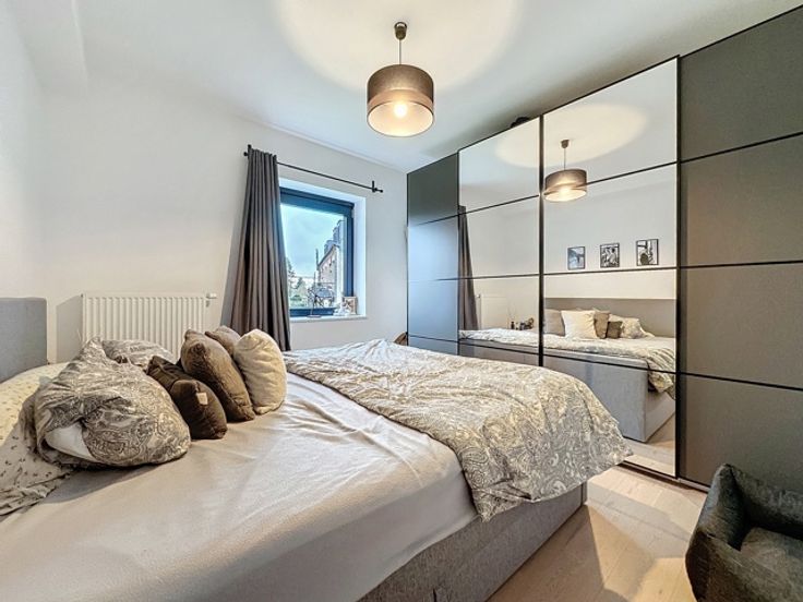 PEB"A" - Construction 2022 Dans le récent projet "Les Jardins de la Cure", Aryes vous propose ce superbe appartement de 85m² situé au 1er étage dans un environnement de choix. Bénéficiant de finitions haut de gamme et de matériaux de qualité. Situation optimale pour les amoureux du calme et de la nature tout en profitant des facilités à proximité directe. Il se compose comme suit : un hall d'entrée desservant d'une part un séjour lumineux avec accès direct à la terrasse (orientée sud-ouest) ainsi qu'une cuisine hyper équipée ouverte sur la pièce de vie et d'autre part, une toilette indépendante, la buanderie, la salle bains et deux belles chambres avec vue sur les espaces verts. Une cave est incluse. Deux emplacements de parking extérieurs sont inclus dans la vente. Vaste parking visiteur. Charges communes ~90€/mois. Confort technique de choix et excellentes performances énergétiques. VMC double flux - Châssis double PVC - Compteurs individuels. Actuellement loué en bail résidentiel de trois ans. Vente sous régime TVA 21%*. Faire offre à partir de 295.000€ sous réserve d'acceptation par le propriétaire. Ne tardez pas pour venir le visiter !