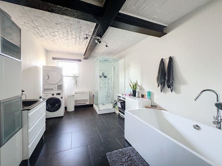 Située dans un cadre calme et verdoyant 🌿, cette maison récemment rénovée 🛠️ vous séduira dès l'entrée par son charme et ses espaces bien pensés. Au rez-de-chaussée, vous découvrirez deux grandes chambres lumineuses 🛏️, parfaites pour offrir confort et tranquillité. Une spacieuse salle de bain moderne 🚿 complète ce niveau, équipée d'une cabine de douche pour une ambiance détente. À l'étage, laissez-vous surprendre par un grand salon 🛋️ baigné de lumière naturelle, offrant une vue apaisante 🌅 sur les environs, idéal pour se relaxer après une longue journée. L'étage comprend également un espace bureau 🖥️, idéal pour travailler à domicile en toute sérénité, ainsi qu'une magnifique cuisine équipée 🍽️, parfaite pour préparer vos repas avec tout le confort moderne. À l'extérieur, un grand jardin arboré 🌳 vous attend pour des moments de détente ou des repas en plein air, tandis que le garage spacieux 🚗 offre un espace de stockage pratique 📦 et un atelier 🛠️ pour vos projets de bricolage. Une place de parking intérieure est à disposition, et le parking extérieur en béton 🅿️ facilite le stationnement de plusieurs véhicules en toute simplicité. Si vous recherchez une maison où confort moderne et sérénité s'harmonisent parfaitement, cette propriété est faite pour vous. Contactez-nous 📞 dès aujourd’hui pour organiser une visite et découvrir ce véritable havre de paix. Gelegen in een rustige en groene omgeving 🌿, zal deze recent gerenoveerde woning 🛠️ u bij binnenkomst verleiden met…