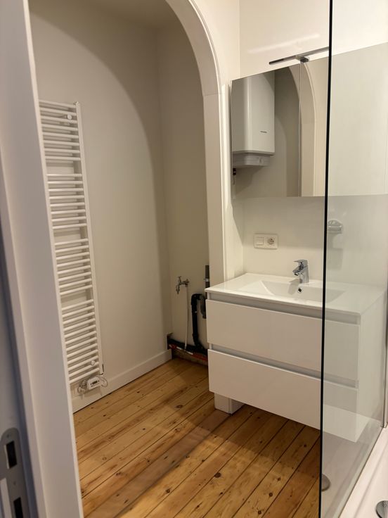 Mooi en ruim appartement van 90m2 in de expo wijk. Indeling: hal, ruime leefruimte met veel lichtinval en met authentieke parketvloer, keuken met nieuwe vaatwasser en koelkast, ,aparte WC met handenwasser, nieuwe badkamer met inloopdouche