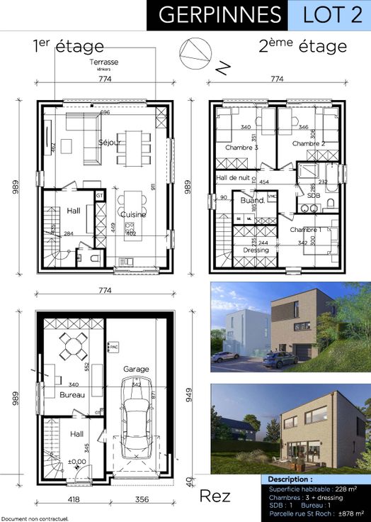 Villa 4 façades, 3 chambres, dressing, bureau, garage
