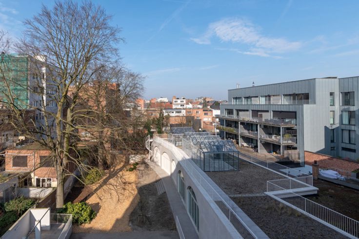 In het stijlvolle nieuwbouwproject Arte Nova ontdek je dit lichtrijke appartement op de vijfde én hoogste verdieping – met een panoramisch zicht over Mechelen en een subtiele penthousevibe. De woonruimte voelt open en luchtig aan, dankzij de grote raampartijen en de hoogte. Vanuit de leefruimte stap je zo op het zuidgericht terras waar je in alle rust en privacy van de stad geniet. De open keuken is modern en strak afgewerkt met kwalitatieve AEG-inbouwtoestellen. Twee comfortabele slaapkamers, een ruime badkamer met ligbad en inloopdouche, een apart toilet en een praktische berging maken het plaatje compleet. De vloer van de woning is afgewerkt met parket. Arte Nova staat voor duurzaam en slim wonen. Denk aan zonnepanelen, een laag energieverbruik (gunstig E-peil), en gemeenschappelijke extra’s zoals een gezellige stadstuin, een serre voor bewoners en handige deelauto’s. Door de ligging op de bovenste verdieping ervaar je hier extra stilte, privacy en lichtinval – perfect voor wie houdt van een exclusiever woongevoel in de stad. Gelegen op een toplocatie in Mechelen: alles op wandelafstand en toch rust in huis. Interesse? Vraag vandaag nog een bezoek aan!