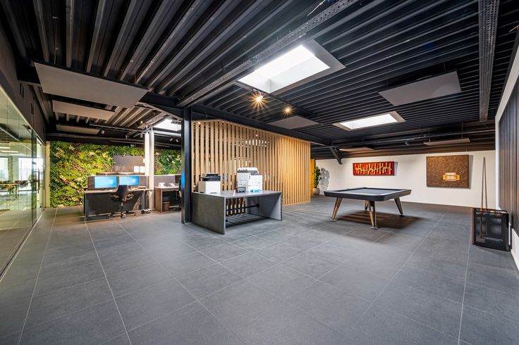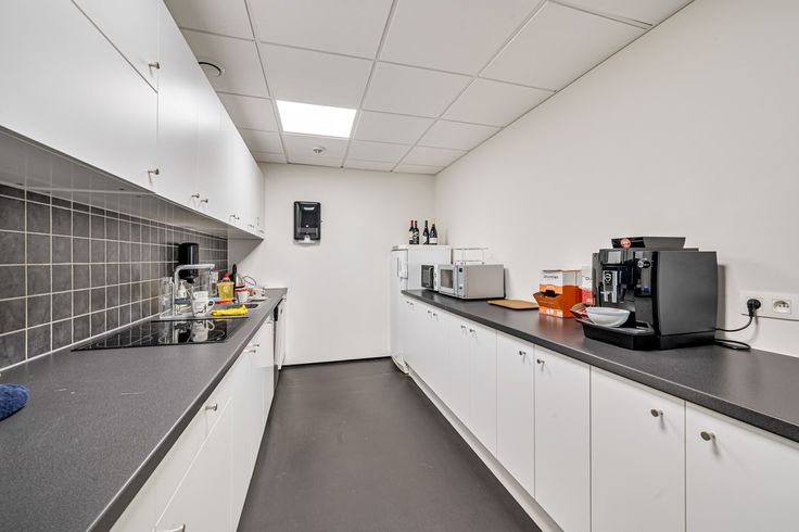 Het magazijn biedt dan weer voldoende ruimte voor de opslag van voorraad en materialen. Hoge plafonds, brede toegangsdeuren, alles is aanwezig om het laden en lossen van goederen vlotter te laten verlopen.