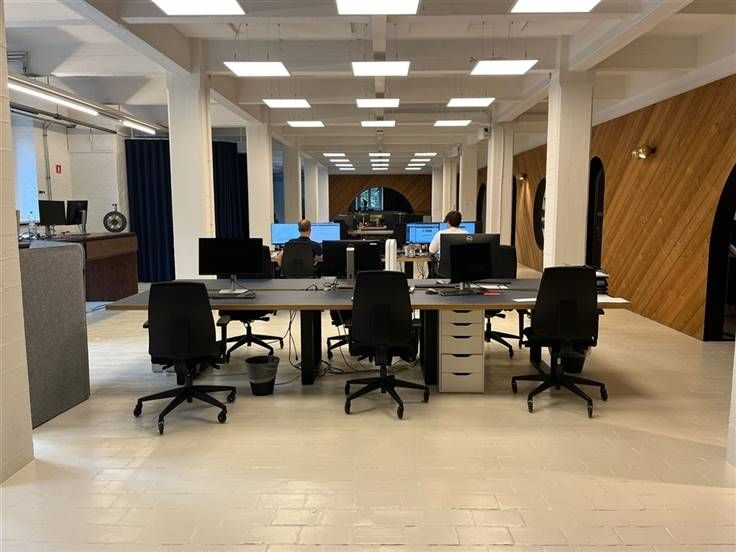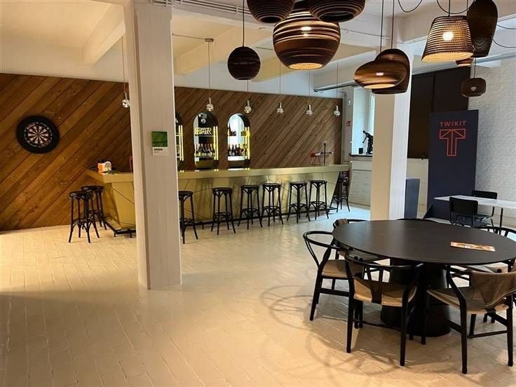 De beschikbare kantoorruimte is instapklaar en uitgerust met vergaderzalen, open space kantoren, ingerichte keuken met bar.