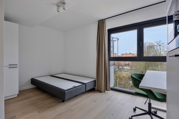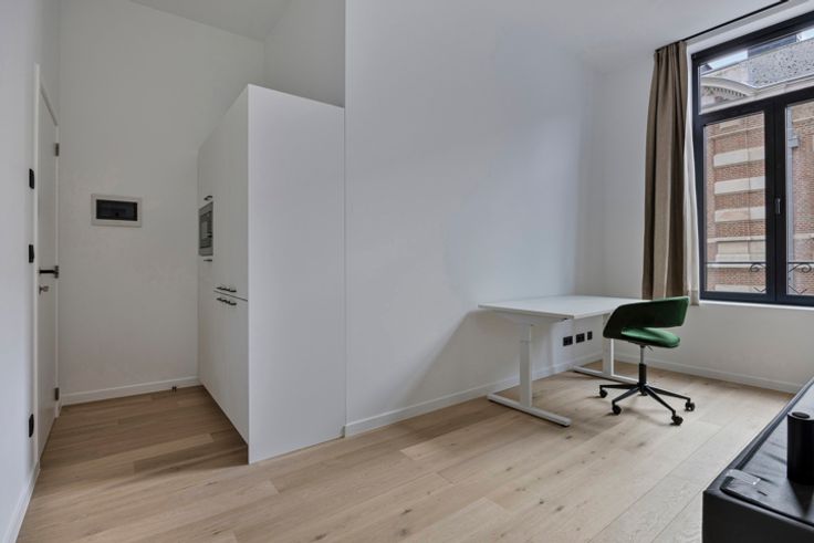 Residentie An, mooi en kwalitatief project met 5 ruime, stijlvolle studentenkamers met eigen privébadkamer en maatmeubilair en 1 gezellige studio met tuin. Authenticiteit en stijl worden meesterlijk samengesmolten. De residentie ligt in hartje Leuven, recht tegenover faculteiten economie, talen en industrieel ingenieur. Neoclassicistische voorgevel wordt stijlvol wit geschilderd. Binnenin authentieke beukentrap, hoge plafonds en moderne afwerking zoals parketvloeren, aluminium ramen met dubbel glas, regenwaterrecuperatie en domotica-videofoonsysteem gekoppeld aan gsm. De kamers worden volledig bemeubeld met bureau, stoel, bed, maatkast met koelkast/microgolf en verduisterende gordijnen. Gemeensch. keuken op gelijkvloers met vaatwas, combi-oven, kookplaat en toegang tot zonnige tuin met fietsenstalling. Kelder met berging, stookruimte en afvalbeheer. Duurzame technieken: geïsoleerd dak, nieuwe welven, geïsoleerde vloeren, individuele verbruiksmeters, gemeenschappelijke ketel. Op slechts 1km van het station, vlakbij stadspark, winkels, Alma, resto’s en openbaar vervoer. Parkeren in de straat. Unieke kans op de Leuvense vastgoedmarkt; goed rendement (+/- 4,5%) of ook ideaal voor studerende kinderen! Bij aankoop, geen voorschot vereist. Evenmin btw, enkel registratierechten van toepassing. Oplevering september 2025. Bezoekmomenten worden ingepland, inclusief een afgewerkt pand zodat je de afwerking zelf kan ervaren. Wees er bij, contacteer ons via info@century21skyline.be