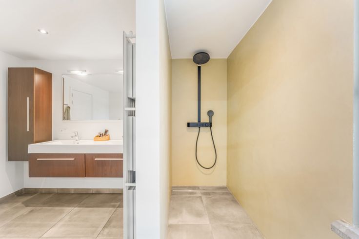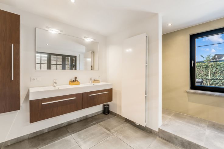 * gerenoveerde badkamer met dubbel wastafel en inloop douche (2025)