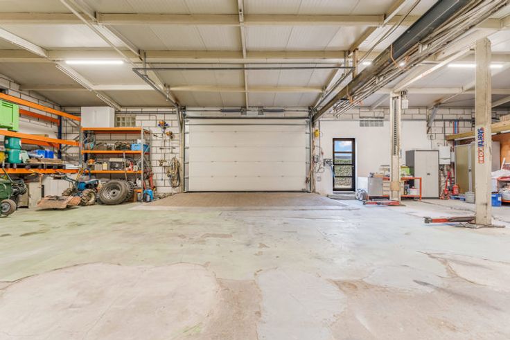 Te koop Gelijkvloers appartement met inpandige garage en bedrijfshal