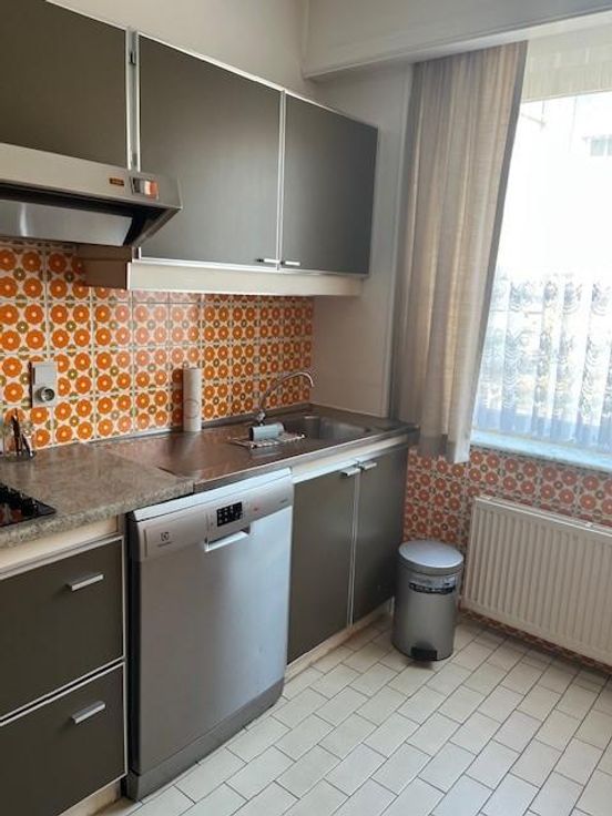 Mooi appartement met : inkom met vestiaire, hal, aparte WC, woonkamer, keuken, badkamer, wasplaats/berging, 2 slaapkamers, terras en garage. Te Bevragen : notaris De Ferm & Van Oostveldt - 03/620.14.46 / bezichtiging op afspraak. G score: A P score: A