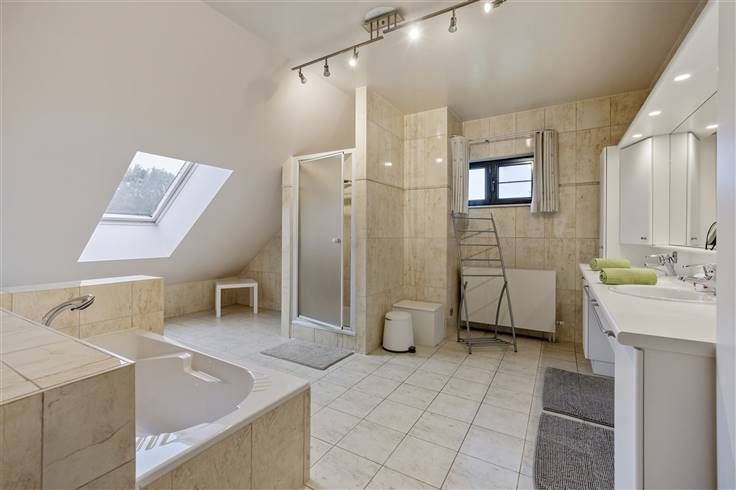 De woning biedt vier ruime slaapkamers en een royale badkamer, uitgerust met een ligbad en een douche. Op het gelijkvloers is er nog een aparte doucheruimte voorzien.