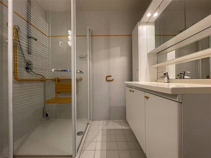 De ruime slaapkamer biedt voldoende plaats voor een tweepersoonsbed en kasten, terwijl een extra ruimte perfect kan dienen als wasplaats of bureau. De badkamer beschikt over een douche en een praktisch badkamermeubel. Daarnaast is er een apart toilet, een royale keuken en een terras. In de kelder bevindt zich een private berging voor extra opbergruimte.