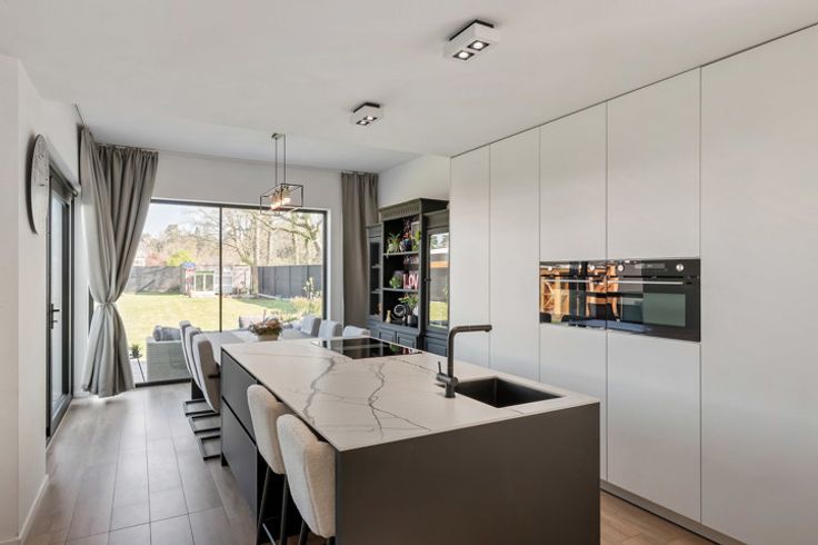 Instapklaar en rustig gelegen! Op een knap perceel van 723m², in een rustige en kindvriendelijke buurt nabij scholen, winkels en openbaar vervoer, vindt u deze moderne open bebouwing met een luxueuze afwerking en optimaal wooncomfort. Bekijk zeker onze grondplannen op https://www.vastgoedservice.be/vgs4/pand_one.asp?Immo_ID=19708 om een perfect beeld te krijgen van de indeling van deze woning. De lichtrijke leefruimte met grote raampartijen biedt een prachtig zicht op de tuin en sluit naadloos aan op de volledig uitgeruste open keuken met een stijlvol keramisch keukenblad. De woning beschikt over drie ruime slaapkamers, een knusse gezellige bureauruimte, en een moderne badkamer met zowel een ligbad als een inloopdouche. Buiten geniet u van een ruim terras (+- 42m2) en een fraai aangelegde tuin, perfect voor ontspanning. Daarnaast is er voldoende parkeergelegenheid aanwezig. Voor extra veiligheid is de woning uitgerust met een alarmsysteem. Deze instapklare woning biedt een perfecte combinatie van rust, ruimte en moderne luxe. Bijzonderheden: * verkoop onder registratie (2%) * EPC A * zonnepanelen * vloerverwarming * regenwaterput (5000L) * pre airco voorzien * praktische berging aan de keuken Voor verdere informatie kan U steeds terecht op ons kantoor. 014/82.15.15.