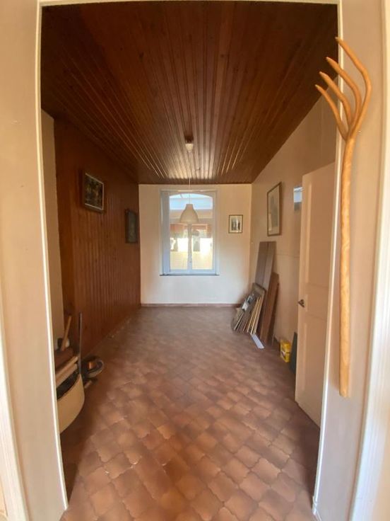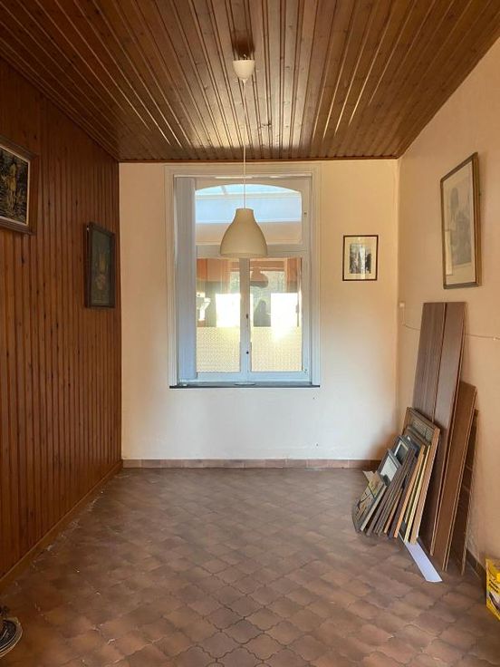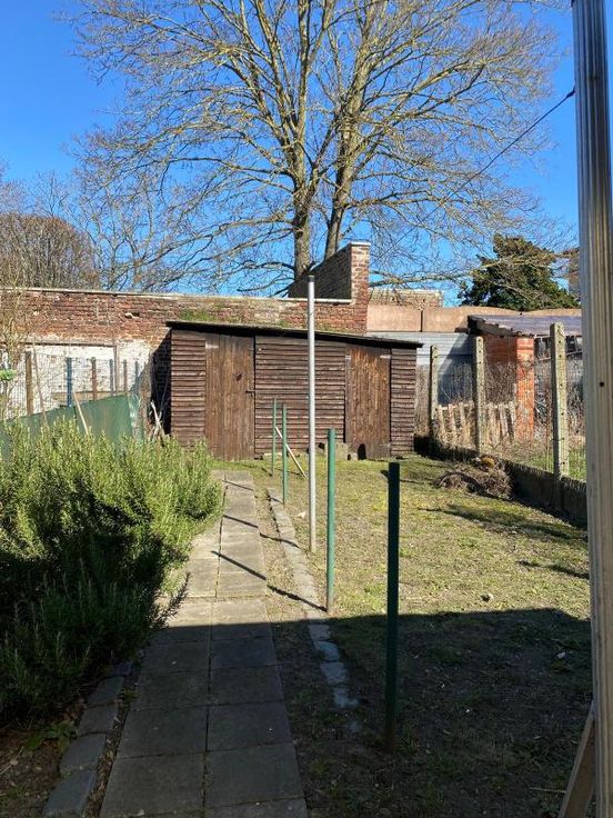 Maison 2 façades sur 1a 60ca – RC : 528,00 euros Comprenant : -RDC : couloir, living, cuisine équipée (ancienne), salle de bains avec lavabo, baignoire, WC, bidet + raccordements MàL -1er Etage : hall de nuit, 2 chambres -2ème étage : grenier à aménager -Extérieur : pergola, terrasse, jardin, abri de jardin -Sous-sol : 2 caves -Chauffage : convecteurs au gaz