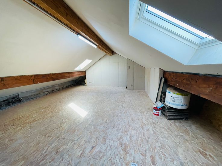 Tweede verdieping: Grote slaapkamer (+- 25 m²).