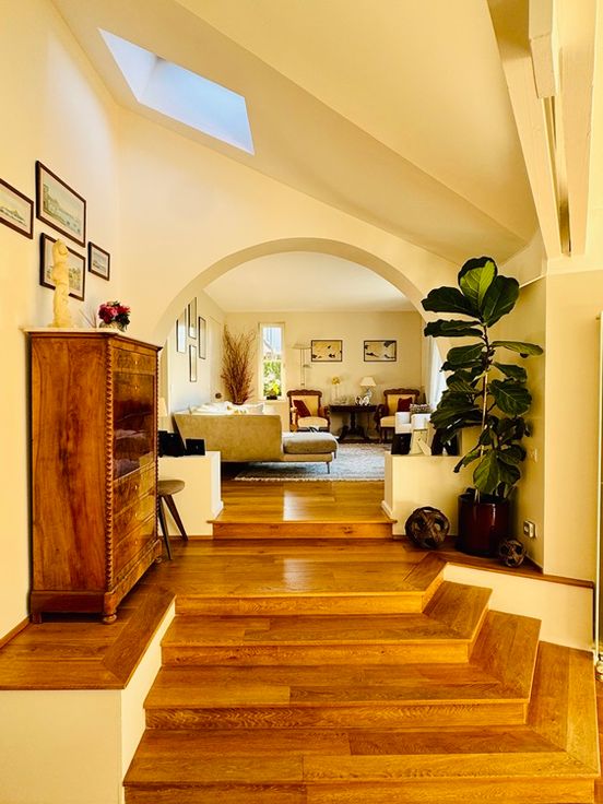 Cette maison implantée sur un terrain de 9.88 ares, offre de très beaux volumes et un magnifique jardin arboré, agrémenté d’une belle piscine neuve et d’une pergola. Le hall d’entrée comprend une toilette invité et s’ouvre sur des espaces lumineux et spacieux: un salon (25M2), une familly room avec FO (25m2), un bureau, une vaste cuisine équipée ouverte sur la salle à manger (50m2).