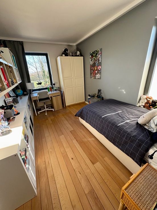L’agencement offre une belle circulation entre les pièces intérieures et le jardin, l’emplacement de la maison permettant de profiter de manière optimale du soleil tout au long de la journée. A l’étage, le hall de nuit dessert une suite parentale disposant de sa propre salle de bain (2021), deux autres chambres et une salle d’eau. Le dernier étage offre deux grandes chambres (dont une avec sa salle de douche) très lumineuses avec des vues imprenables sur la réserve du Kauwberg, Saint-Job ainsi que le Brabant flamant. Cet espace pourrait être idéal pour des adolescents ou des invités. La partie inférieure est composée d’un garage deux voitures, une buanderie, une cave à vin et une cave de rangement. Nouvelle chaudière au gaz, électricité conforme (valable jusque 2050),PEB E-. Visites : 0475.21.74.14