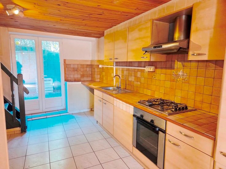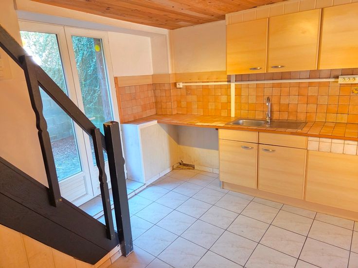 Elle se compose au rez-de-chaussée d’un séjour avec son poêle à pellets, d'une lumineuse salle à manger, d’une cuisine avec un coin dinatoire bénéficiant d’un accès direct à une terrasse et d’un wc.