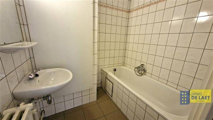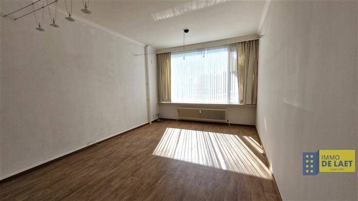 We komen het appartement, voorheen een dokterspraktijk, binnen in een inkomhal om vooraan in de leefruimte van ca 26m² te komen. Deze staat in verbinding met een semi open basic keuken van 7m². Achteraan het appartement is er een apart toilet, en is er een ingebouwde kast. Badkamer met ligbad en lavabo. Beide slaapkamers ( 14m² en 9m²) bevinden zich achteraan. Er is geen buitenruimte, wel een privatieve kelderberging en gezamenlijke fietsenberging.