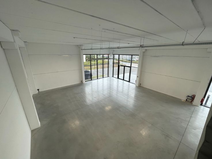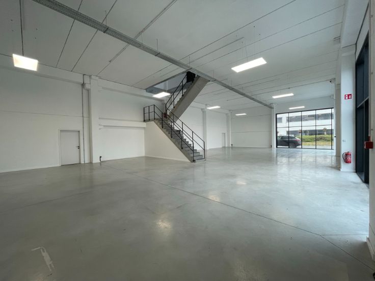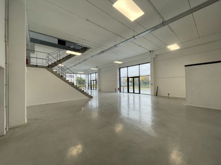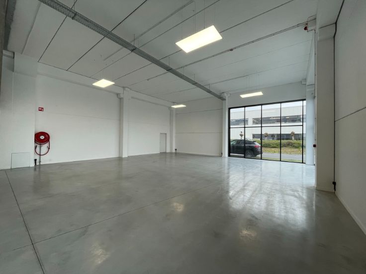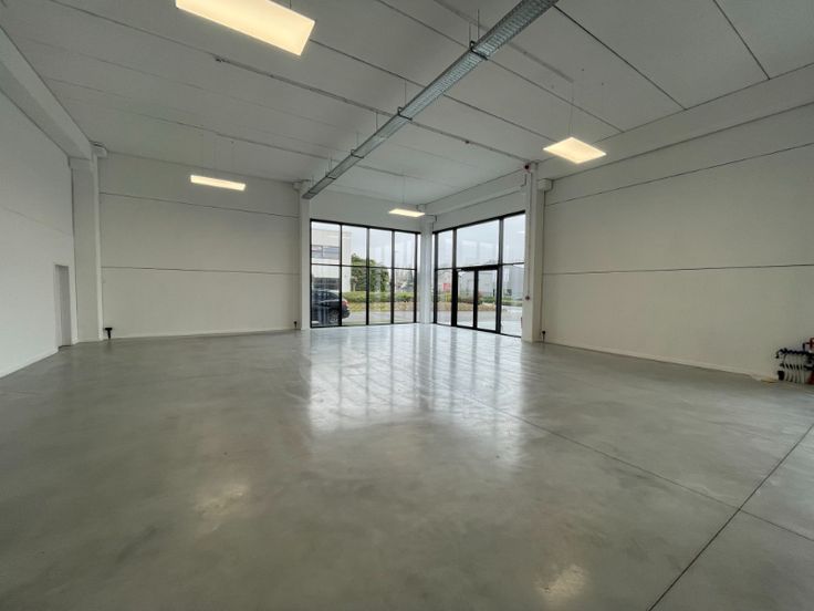 Dit nieuwbouw bedrijfsgebouw is opgebouwd uit architectonisch beton, aluminium schrijnwerk, dubbele beglazing, plafond met betonnen gewelven, opbouw LED-armaturen, polybetonvloer, sanitair H/D, kitchenette, vloerverwarming, airco en mechanische ventilatie. Het kantoor is landscape en heeft 12 parkeerplaatsen (420€/ppl/jaar) voor de deur. Het magazijn is opgebouwd in een betonstructuur met een automatische sectionaalpoort, polybetonvloer en lichtkoepel.