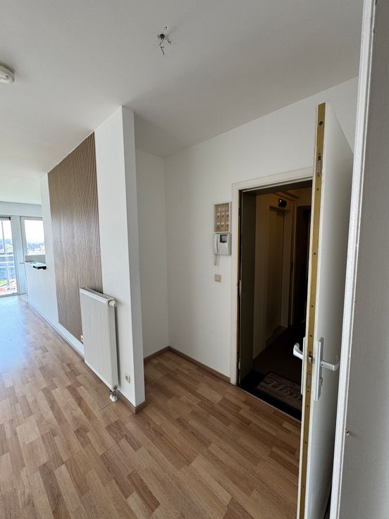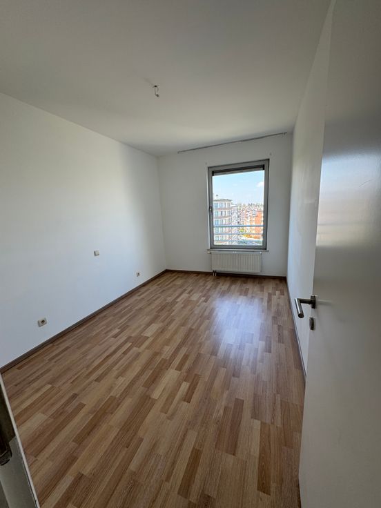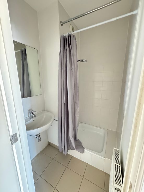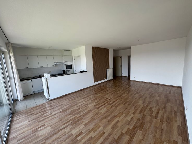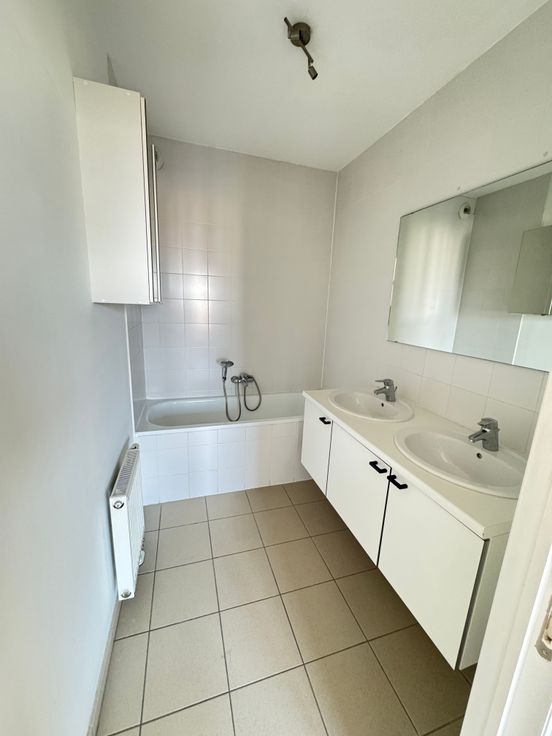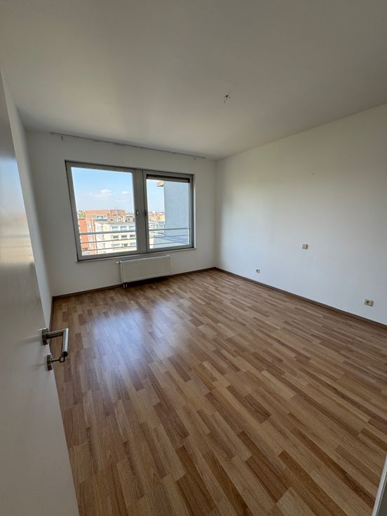 Vue sur Bruxelles et sur le stade du RWDM. Il se compose d'un hall d'entrée, d'un séjour de 35m² avec cuisine équipée (taque, four, hotte, frigo, lave-vaisselle) et terrasse de 7,56m², d'une chambre de 15m² avec salle de bain de 4m², d'une deuxième chambre de 11m², d'une salle de douche, d'une buanderie de 2m² et d'un WC séparé, d'un hall de nuit avec rangement. Double vitrage, parlophone/vidéo, ascenseur, cave. Le bâtiment est isolé.