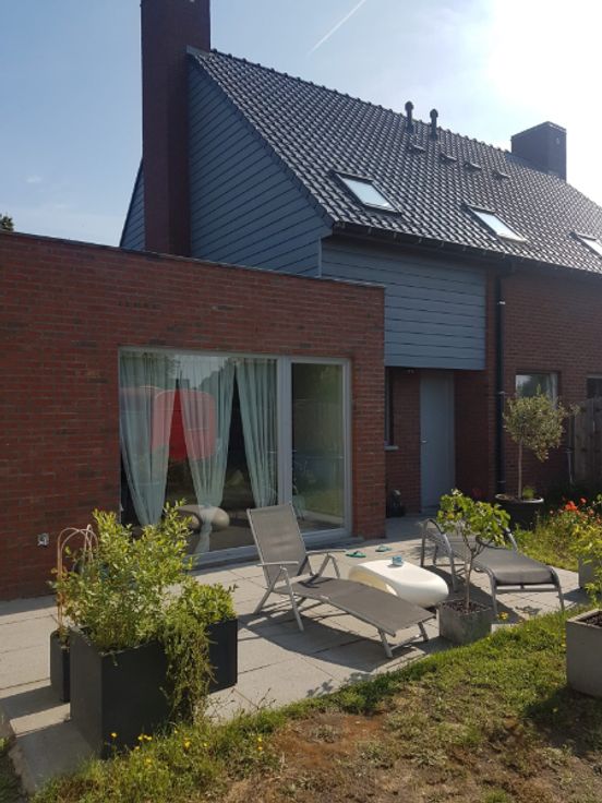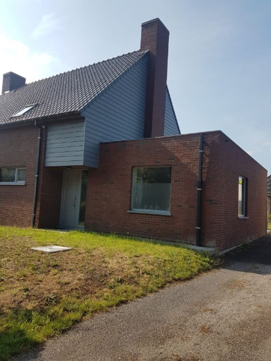 Ruime woning in half-open bebouwing, met voortuin en achtertuin. Living van 38m² en open keuken met ijskast en combi-oven. Inloopdouche beneden en badkamer met ligbad, lavabo en toilet boven. Eén slaapkamer (of bureel) beneden en twee slaapkamers boven. Verwarming op aardgas (HR-ketel) met vloerverwarming beneden en radiator boven. Carport voorzien. Openbaar vervoer in de nabije omgeving.