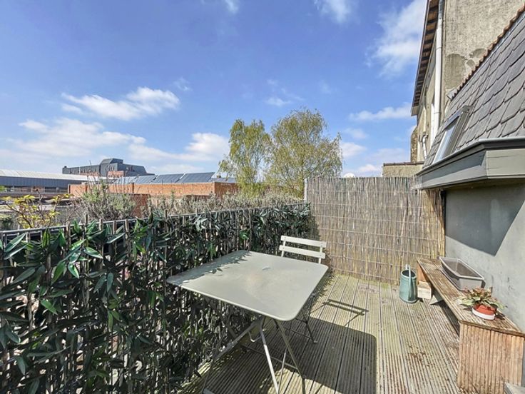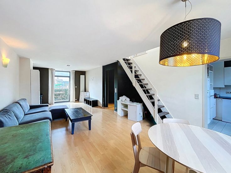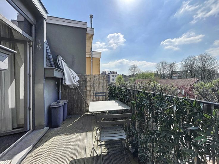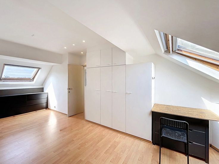 À proximité du quartier européen, non loin de la V.U.B et du Parc du Roi Vainqueur, au 2e étage d’un petit immeuble calme, superbe penthouse deux chambres de ±80m² avec terrasse attenante orientée SUD - OUEST. Composition : hall d'entrée avec vestiaire, spacieux et lumineux living de ±32m² avec terrasse attenante orientée SUD - OUEST, cuisine super-équipée comprenant : frigo, taques de cuissons, lave-vaisselle, hotte, micro-onde, hall de nuit, 2 chambres de ±9 et 18m² dont une avec douche attenante, salle de bains avec machine à laver et séchoir, wc individuel. Divers : LIBRE IMMEDIATEMENT, idéal pour une colocation, chaudière individuelle, double vitrage, parlophone, climatisation. Faibles charges de 50€/mois pour les communs. Idéalement situé à proximité de toutes commodités : commerces, restaurants, parcs, écoles, espaces sportifs… Transports en commun : bus : 7, 28, 80, T44, 61, N06, 29 et N05, tram : 7, 25. Annonces et indications non contractuelles, sous réserve de modifications. Info : est@macnash.com – Tel 02 779 99 99 – ID 6701094