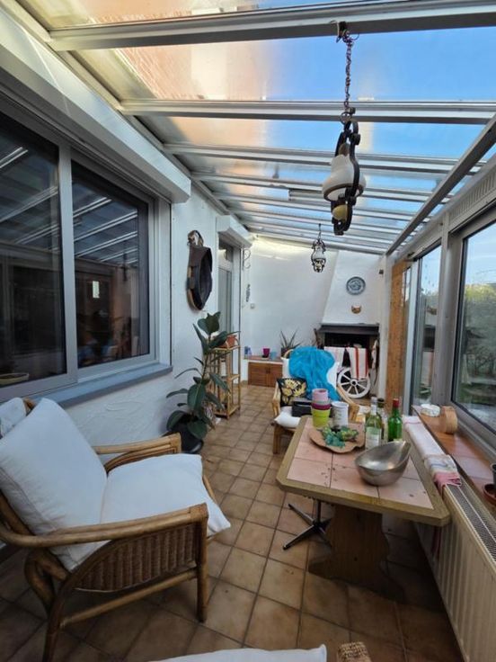 Seraing-Ougreé - rue de la Rose, 25 - maison à vendre sur les hauteurs d'Ougrée - quartier roche de Boncelles. COMPOSITION : REZ-DE-CHAUSSEE -sur charpente en béton – totalement carrelée : un hall d’entrée avec WC et vestiaire (de 1,58 m² (0,80*1,98)) de 9,77 m² (2,28*2,07) – un salon de 14,50 m² (4,20*3,45) – une salle à manger de 13,96 m² (4,00*3,49) – une cuisine partiellement équipée de 6,20 m² (2,87*2,16) – une véranda de 12,55 m² (5,53*2,27) 1er ETAGE -sur charpente en bois – quick-step au sol :: Hall de nuit 2 chambres de 12,53 (3,50*3,58) et 9,83 m² (2,50*3,93) – un cagibi de 1,77 m² (2,01*0,88) – une salle de bain composée d’une douche, d’un lavabo simple, d’un WC et d’un bidet), de 8,18 m² 2ème ETAGE : Grenier aménagé de 26,78 m² )+(3,01*1,66)) SOUS-SOL: Garage de 16,85 m² (3,37*5,00) – caves de 7,47 (3,41*2,59) et 8,04 m² (3,08*2,61) RENSEIGNEMENTS DIVERS: Chauffage central au gaz de ville, chaudière à condensation – survitrage en aluminium 1ère génération – volets partout électriques et mécaniques – installation électrique monohoraire pas aux normes – pas de panneaux photovoltaïques – jardin sur le pourtour de la maison – certificat PEB :F – R.C. : 624,00 euros