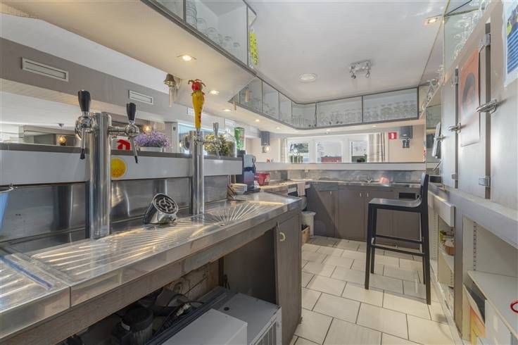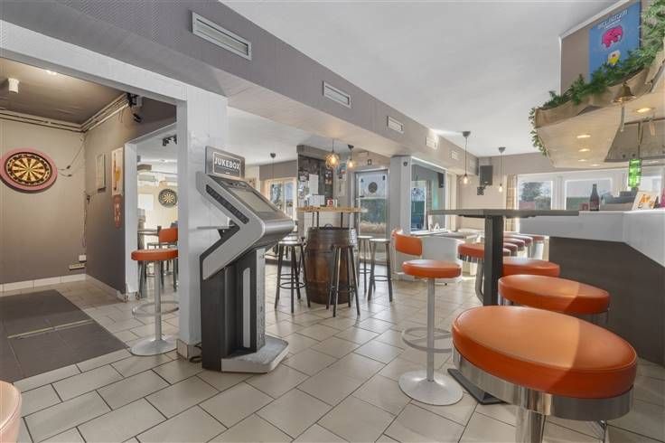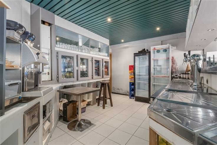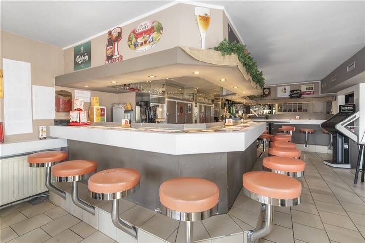 Dit ruime pand van 384 m² biedt mogelijkheden voor een creatieve ondernemer. Bij het betreden van het pand komt u meteen in de uitnodigende horecazaal voorzien met een sfeervolle bar en gescheiden toiletruimte. De grote zaal biedt tal van indelingsmogelijkheden en is ideaal voor evenementen of praatcafé. Verder is het uitgerust met een praktische keuken en berging waardoor uw voorraad altijd binnen handbereik is. Achteraan het gebouw is een zeer ruime opslagplaats aanwezig met extra koelruimte en douchecel. Buiten kan u gezellig vertoeven op het terras of een kijkje nemen in de afgesloten tuin met rustieke vijver.