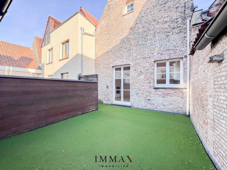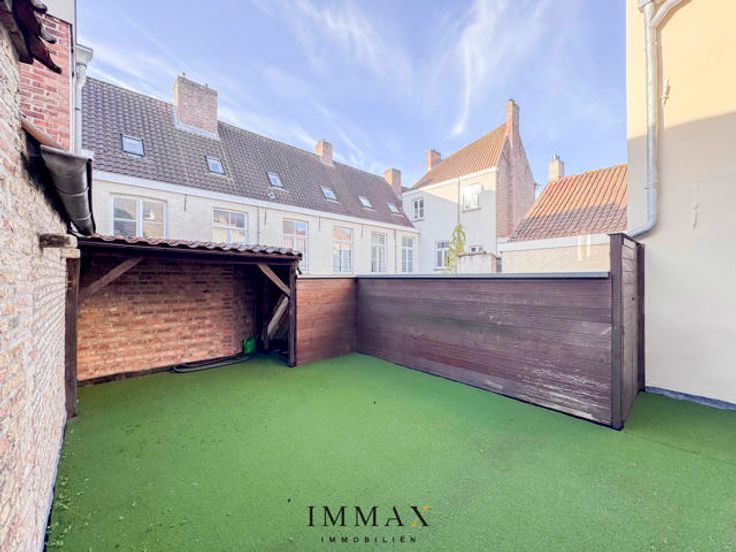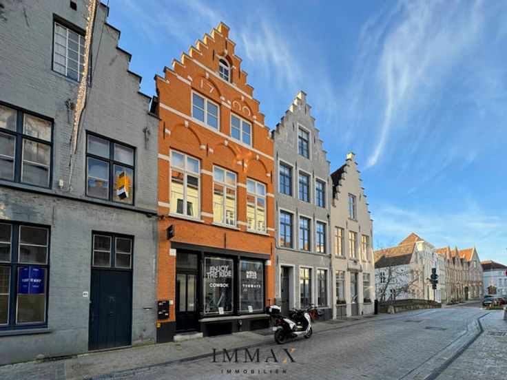 Op zoek naar een mooie investering in de Brugse binnenstad? Dan presenteer ik U graag deze volledig gerenoveerde herenwoning onderverdeeld in een winkel en een duplex appartement met ruim zonneterras (27 m²) Indeling: Gemeenschappelijke Inkom met tellerkast en toegang tot winkel en woonst, De mooi ingerichte winkel (32 m²) met kitchenette en toilet is verhuurd. De woning heeft zijn eigen inkom met toegang tot de ruime kelder en traphall. Op de eerste verdieping hebben we een gastentoilet, een ruime lichtrijke living(28 m²) met toegang tot zonneterras (27 m²) en open ingerichte keuken met aansluitend technische berging. Op de tweede verdieping zijn er twee slaapkamers van elk 16 m² en een badkamer met ligbad, douche en dubbele lavabo in meubel. De ruime zolder(20 m²) is bereikbaar via zoldertrap. Troeven: - Instapklaar - Zuidgericht terras - Toplocatie in het 'Gouden Ei' van Brugge - Energiezuinig EPC label B - Veel lichtinval Voor meer informatie of om een bezoek te plannen, neem contact op met Jurgen Monteny via 0493 33 05 53 of via jurgen@immax.be.