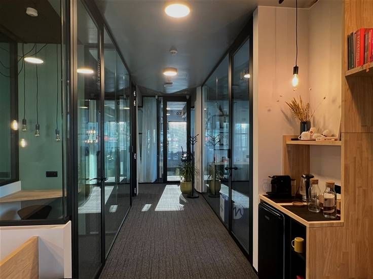 Er kunnen afzonderlijke kantoren vanaf 2 werkplekken alsook een volledige plateau gehuurd worden.
