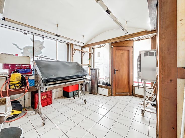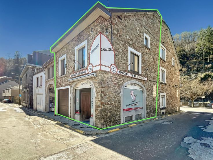 Dit stenen gebouw is geregistreerd als commercieel gebouw en heeft verschillende voordelen ten opzichte van het stadscentrum van La Roche: de garage met sectionaaldeur en de ligging. 50m² per verdieping (begane grond, 1e verdieping, zolder, kelder). Momenteel in gebruik als slagerij, maar kan ook als bedrijfsruimte worden gebruikt of, indien nodig, tot woonruimte worden omgebouwd. Hiervoor is een bouwvergunning nodig.