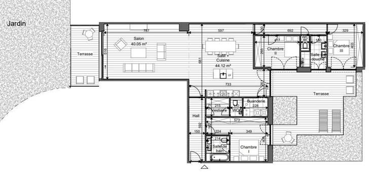 1ère occupation !!! UCCLE (Fort Jaco), dans une nouvelle construction, à proximité immédiate des commerces, des restaurants, du David Lloyd et de la forêt de Soignes, sublime rez-de-chaussée de 194m² + terrasse de 16,5m² + jardin de 287m², comprenant: hall d'entrée, wc invités, living, cuisine full équipée, hall de nuit, wc séparé, 3 chambres, salle de bain + wc, salle de douche, un espace buanderie, porte blindée, cave privative. Parking auto en option (130€/mois), parking moto en option (65€/mois) et local vélos. L'appartement est équipé de rails, luminaires dans certaines pièces. Libre directement. BAIL SOCIETE OK! Pour conditions et visites: 02 344 88 84 / rent@tribel-immo.be / www.tribel-immo.be (PEB: B)