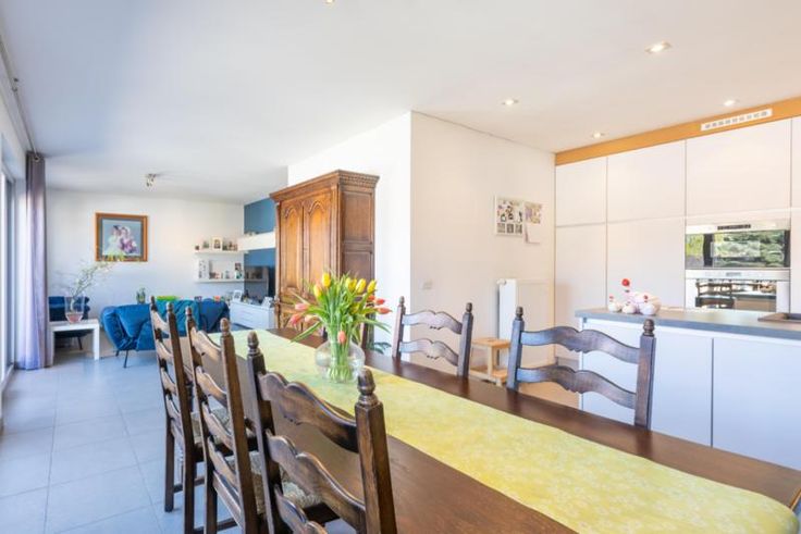 Ruim instap klaar, energiezuinig appartement (121 m² bruto) in het hartje van Nieuwpoort-Stad. Het appartement strekt zich uit over de volledige 2de verdieping van de kleinschalige, charmante residentie Jeanne Panne in de Astridlaan. Het appartement bevat een erg ruime living met eet- en zithoek, een aangrenzende open keuken met alle toestellen (grote koelkast, heteluchtoven, microgolfoven, inductiekookplaat, designdampkap, vaatwasmachine, afwasbak in kleur bijpassend bij het werkblad) en enkele upgrades (twee grote apothekerskasten en extra kastjes); verder 3 volwaardige slaapkamers, erg ruime badkamer (met lavabomeubel, spiegelkast met verlichting, ruime inloopdouche en ligbad), tweede badkamer die momenteel ingericht is als dressing (all n aanwezig voor het plaatsen van een lavabomeubel en een douche), apart toilet, en een ruime berging met plaats voor wasmachine, droogkast en diepvriezer. Zowel achteraan (ochtendzon) en vooraan (namiddag- en avondzon) is er een mooi terras. Achteraan het gebouw beschikt u nog over een ruime garage met automatische poort en een gemeenschappelijke afvalberging. De residentie bevindt zich op een schitterende locatie, alles ligt letterlijk op wandelafstand. Enkele voorbeelden? De lijnbus stopt vlak voor de deur. Binnen een straal van 500 meter vindt u oa. het Astridpark met tennis- en paddelvelden, Leopoldpark met het stedelijk zwembad, de Kaai met zijn vele viswinkels en restaurants, de vismijn, de markt en 2 supermarkten... G score: C P sco